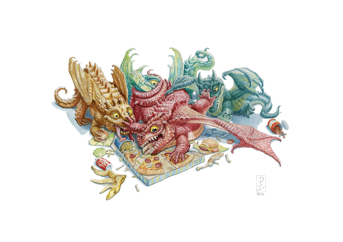 Dragons are greedy by nature.They have a “first come, only served” policy when it comes to distribution of edibles. Even if there is plenty of food to go around there isn’t enough to go around. There is an abundance of stray food in our modern world, enough to ensure that the dragon population could be well fed, but often this isn’t the case. Dragons will expend much energy ensuring they are the only ones to eat when an easy meal is found. In our modern world one man’s trash is a dragons menu.